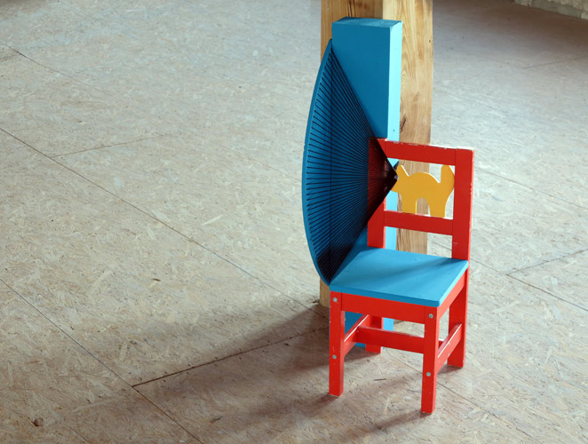 drewno malowane, wełna; 91 x 41 x 41 cm